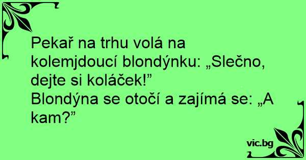Pekař na trhu volá na kolemjdoucí blondýnku: „Slečno, dejte si koláček!”