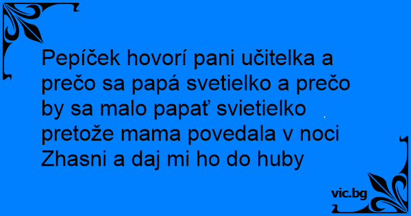 Pepíček hovorí pani učitelka a prečo sa papá svetielko a prečo by sa malo papať svietielko pretože mama povedala v noci Zhasni a daj mi hо do huby