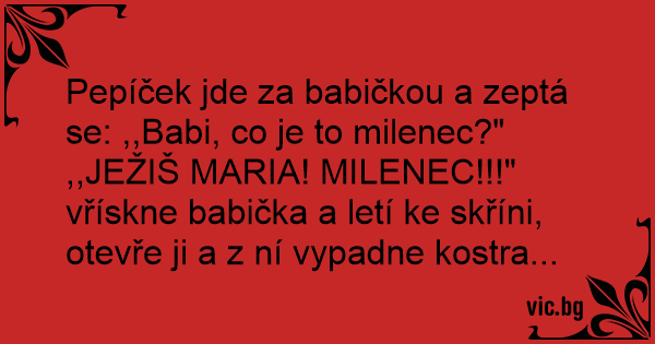Pepíček jde za babičkou a zeptá se: ,,Babi, co je to milenec?"