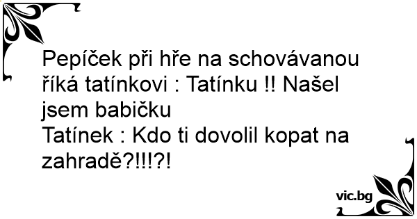 Pepíček při hře na schovávanou říká tatínkovi : Tatínku !! Našel jsem babičku