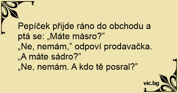 Pepíček přijde ráno do obchodu a ptá se: „Máte másro?”