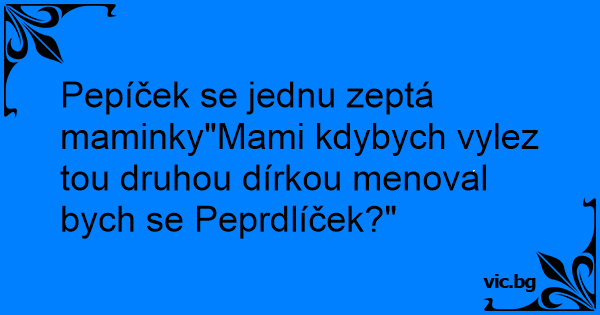Pepíček se jednu zeptá maminky"Mami kdybych vylez tou druhou dírkou menoval bych se Peprdlíček?"