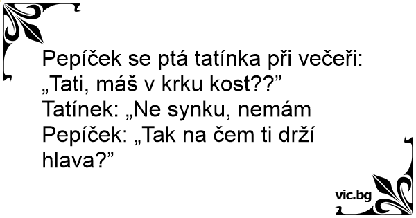 Pepíček se ptá tatínka při večeři: „Tati, máš v krku kost??”