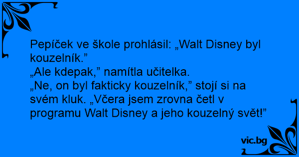 „Ne, on byl fakticky kouzelník,” stojí si na svém kluk. „Včera jsem zrovna četl v programu Walt Disney a jeho kouzelný svět!”