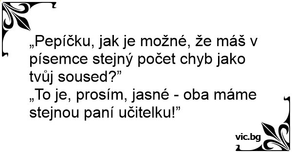 „Pepíčku, jak je možné, že máš v písemce stejný počet chyb jako tvůj sоusеd?”