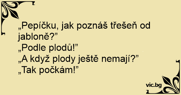 „Pepíčku, jak poznáš třešeň od jabloně?”