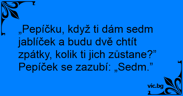 „Pepíčku, když ti dám sedm jablíček a budu dvě chtít zpátky, kolik ti jich zůstane?”
