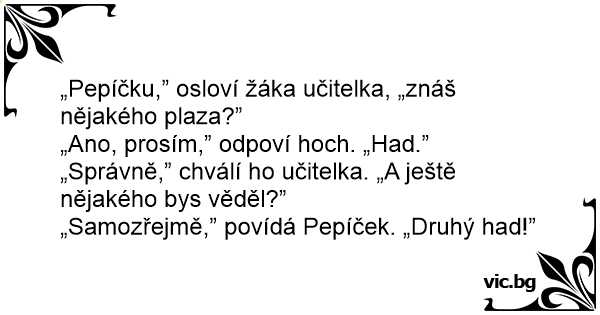 „Samozřejmě,” povídá Pepíček. „Druhý had!”