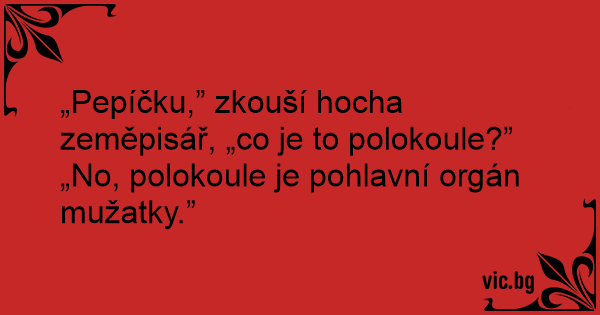 „Pepíčku,” zkouší hocha zeměpisář, „co je to polokoule?”