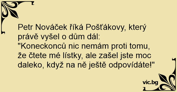 "Koneckonců nic nemám proti tomu, že čtete mé lístky, ale zašel jste moc daleko, když na ně ještě odpovídáte!"