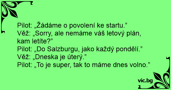 Pilot: „To je super, tak to máme dnes volno.”