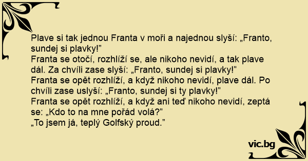 Plave si tak jednou Franta v moři a najednou slyší: „Franto, sundej si plavky!”