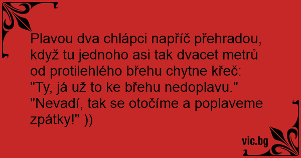 Plavou dva chlápci napříč přehradou, když tu jednoho asi tak dvacet metrů od protilehlého břehu chytne křeč:
