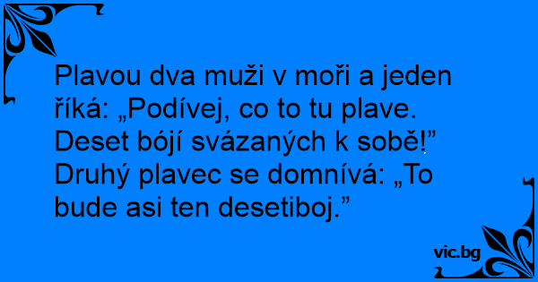Plavou dva muži v moři a jeden říká: „Podívej, co to tu plave. Deset bójí svázaných k sobě!”