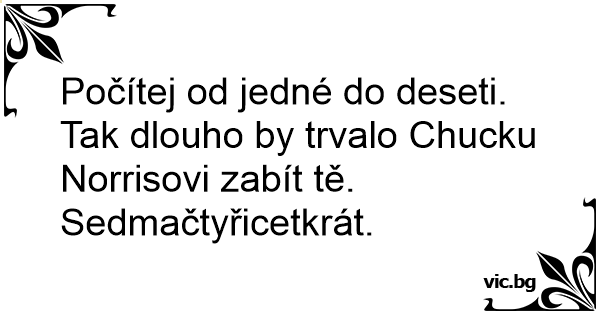 Počítej od jedné do deseti. Tak dlouho by trvalo Chucku Norrisovi zabít tě. Sedmačtyřicetkrát.