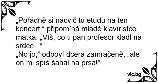 „No jo,” odpoví dcera zamračeně, „ale on mi spíš šahal na prsa!”