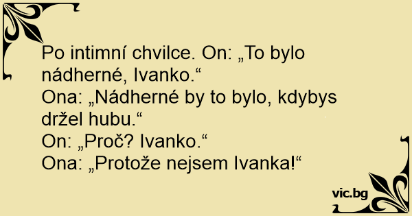 Po intimní chvilce. On: „To bylo nádherné, Ivanko.“
