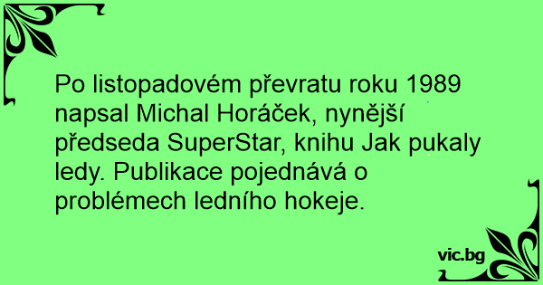 Po listopadovém převratu roku 1989 napsal Michal Horáček, nynější předseda SuperStar, knihu Jak pukaly ledy. Publikace pojednává o problémech ledního hokeje.