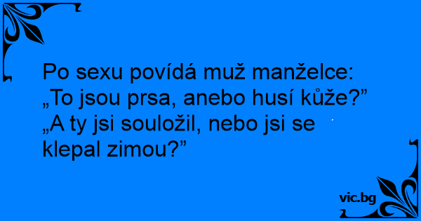 Po sexu povídá muž manželce: „To jsou prsa, anebo husí kůže?”