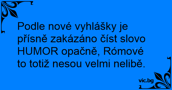 Podle nové vyhlášky je přísně zakázáno číst slovo HUMOR opačně, Rómové to totiž nesou velmi nelibě.