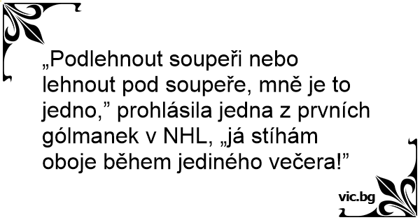 „Podlehnout soupeři nebo lehnout pod soupeře, mně je to jedno,” prohlásila jedna z prvních gólmanek v NHL, „já stíhám oboje během jediného večera!”
