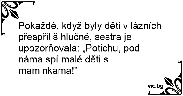 Pokaždé, když byly děti v lázních přespříliš hlučné, sestra je upozorňovala: „Potichu, pod náma spí malé děti s maminkama!”