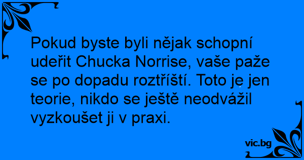Pokud byste byli nějak schopní udeřit Chucka Norrise, vaše paže se po dopadu roztříští. Toto je jen teorie, nikdo se ještě neodvážil vyzkoušet ji v praxi.