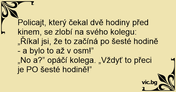 „No a?” opáčí kolega. „Vždyť to přeci je PO šesté hodině!”