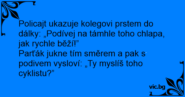 Policajt ukazuje kolegovi prstem do dálky: „Podívej na támhle toho chlapa, jak rychle běží!”