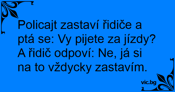 Policajt zastaví řidiče a ptá se: Vy pijete za jízdy?