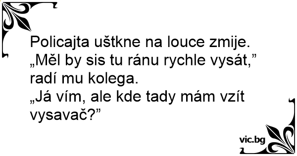 „Měl by sis tu ránu rychle vysát,” radí mu kolega.