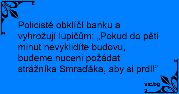 Policisté obklíčí banku a vyhrožují lupičům: „Pokud do pěti minut nevyklidíte budovu, budeme nuceni požádat strážníka Smraďáka, aby si prdl!”
