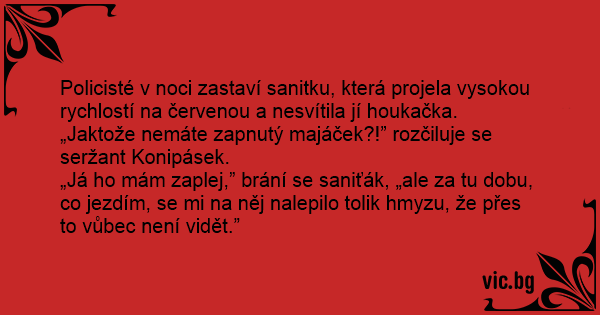 „Jaktože nemáte zapnutý majáček?!” rozčiluje se seržant Konipásek.