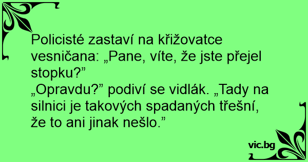„Opravdu?” podiví se vidlák. „Tady na silnici je takových spadaných třešní, že to ani jinak nešlo.”