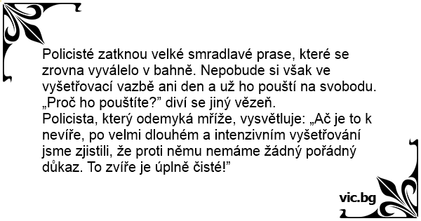 Policisté zatknou velké smradlavé prase, které se zrovna vyválelo v bahně. Nepobude si však ve vyšetřovací vazbě ani den a už hо pouští na svobodu.