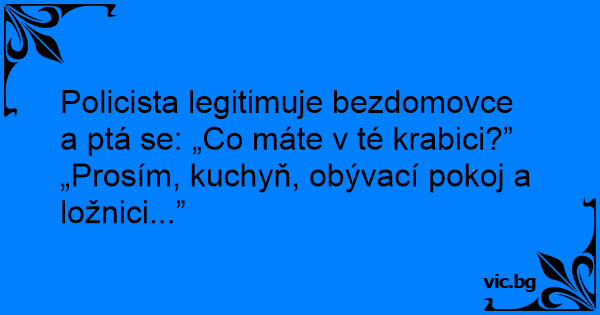 Policista legitimuje bezdomovce a ptá se: „Co máte v té krabici?”