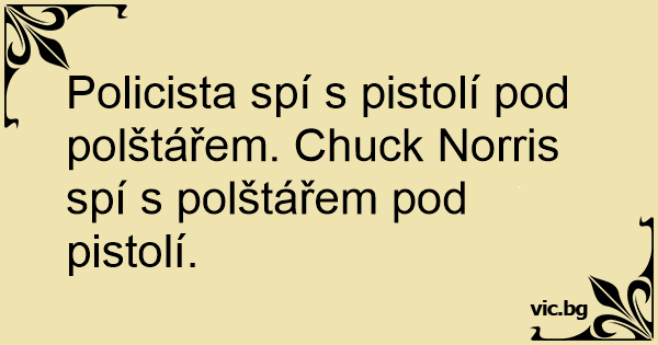 Policista spí s pistolí pod polštářem. Chuck Norris spí s polštářem pod pistolí.