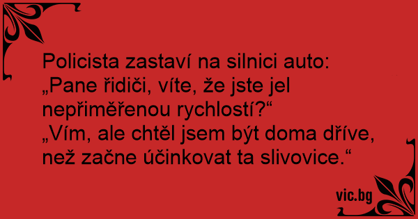 „Vím, ale chtěl jsem být doma dříve, než začne účinkovat ta slivovice.“