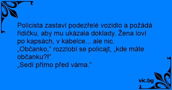 „Občanko,” rozzlobí se policajt, „kde máte občanku?!”