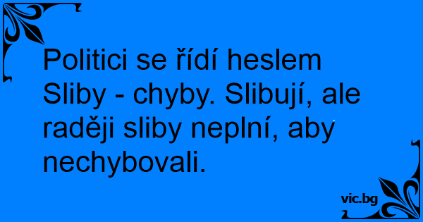 Politici se řídí heslem Sliby - chyby. Slibují, ale raději sliby neplní, aby nechybovali.