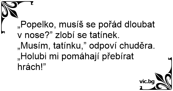 „Musím, tatínku,” odpoví chuděra. „Holubi mi pomáhají přebírat hrách!”