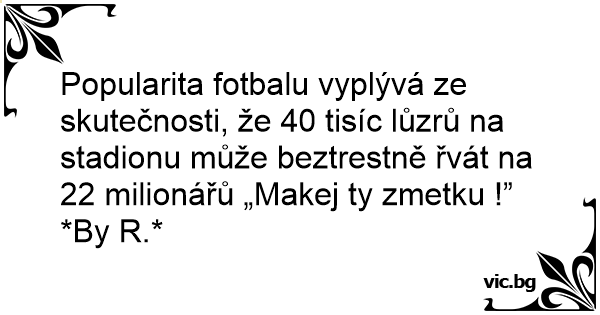 Popularita fotbalu vyplývá ze skutečnosti, že 40 tisíc lůzrů na stadionu může beztrestně řvát na 22 milionářů „Makej ty zmetku !”