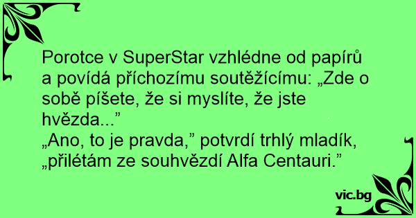 Porotce v SuperStar vzhlédne od papírů a povídá příchozímu soutěžícímu: „Zde o sobě píšete, že si myslíte, že jste hvězda...”