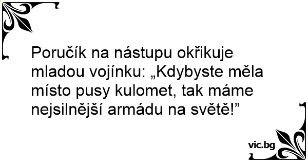 Poručík na nástupu okřikuje mladou vojínku: „Kdybyste měla místo pusy kulomet, tak máme nejsilnější armádu na světě!”
