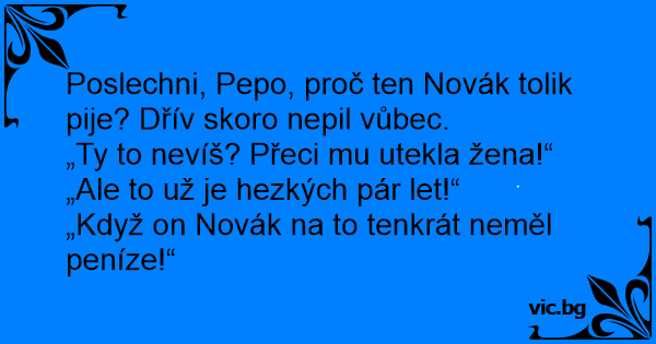 Poslechni, Pepo, proč ten Novák tolik pije? Dřív skoro nepil vůbec.