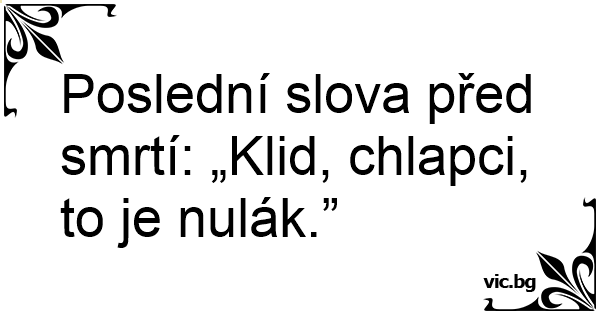 Poslední slova před smrtí: „Klid, chlapci, to je nulák.”