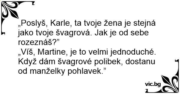 „Víš, Martine, je to velmi jednoduché. Když dám švagrové polibek, dostanu od manželky pohlavek.”