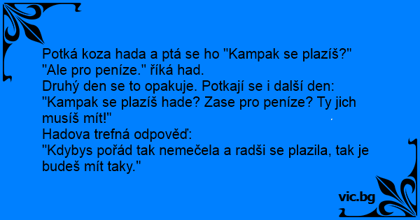 "Ale pro peníze." říká had.