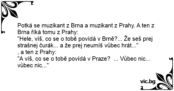 Potká se muzikant z Brna a muzikant z Prahy. A ten z Brna říká tomu z Prahy: