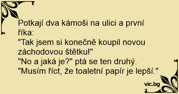 Říká policista kolegovi: „Včera jsem si koupil záchodovou štětku.” „No a jaká je?” „Mám-li říct pravdu, toaletní papír je lepší!”